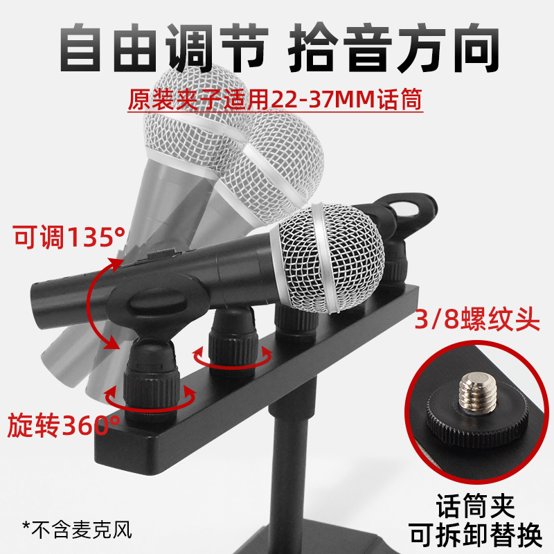 Silver Fish Tabletop Microphone Holder Conference Speech Desk Style Microphone Racks Double Head Bulls Plus Coarse Heavy Vertical Wheat Shelf