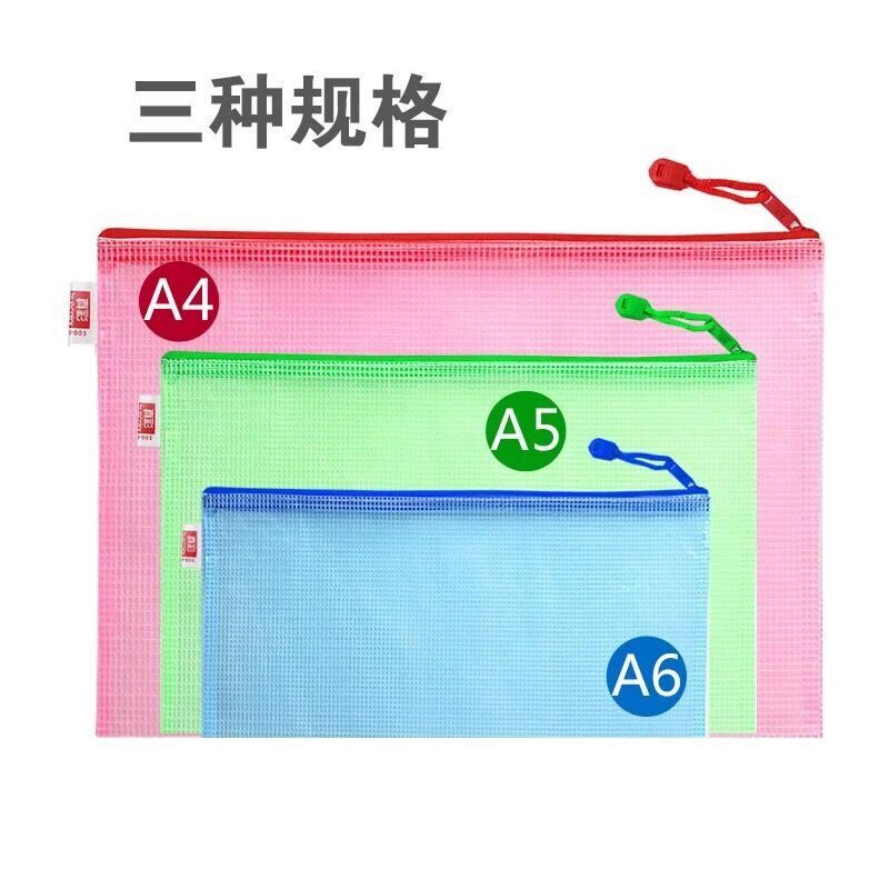 Thickened A4A5A6 grid zipper bag transparent file bag file bag data office waterproof bag student test paper bag