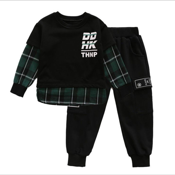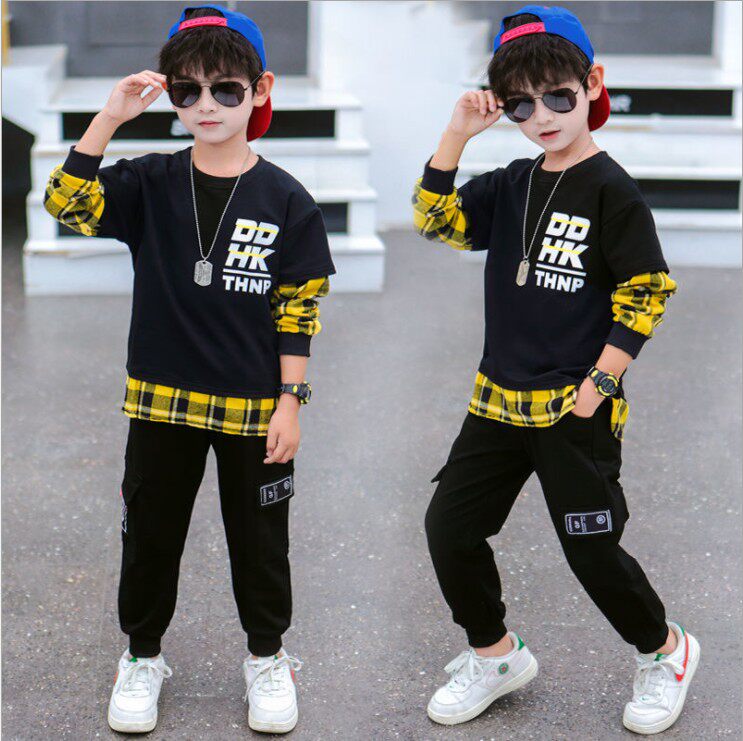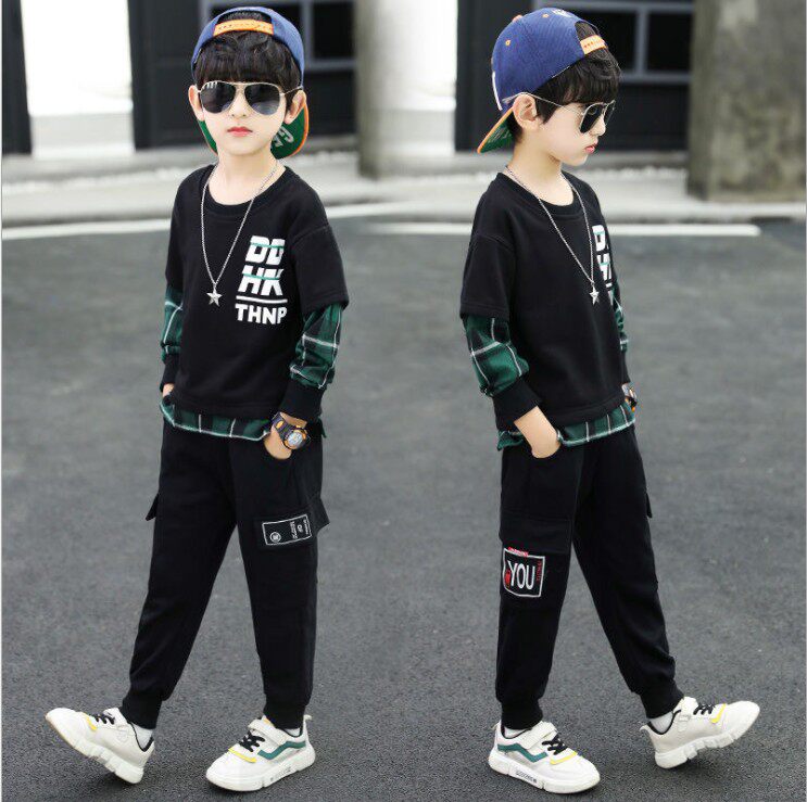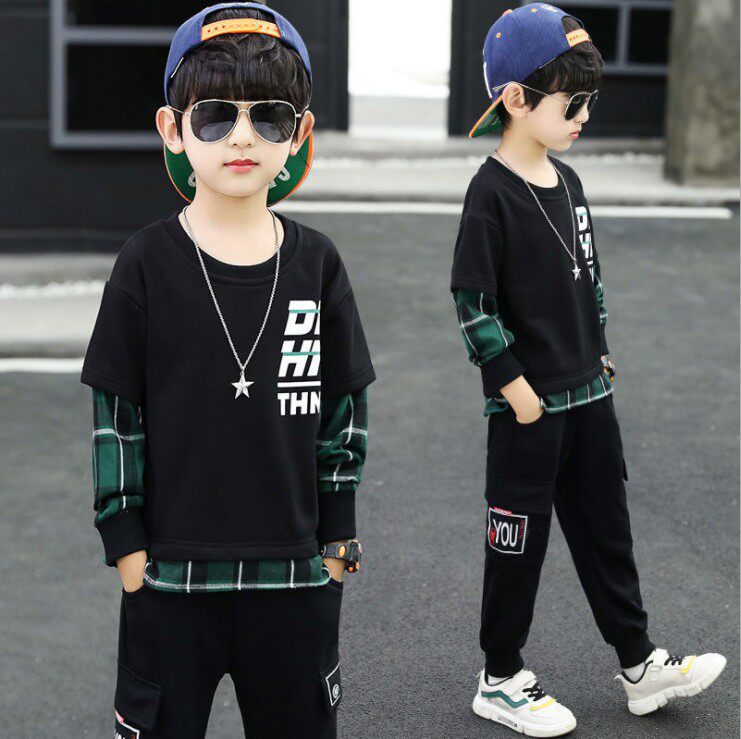 Korean children's clothing boys' spring and autumn clothes 2022 new suit handsome middle-aged children's sweater Korean version fashionable two-piece tide