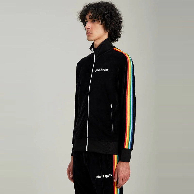 (Official website Spot) PALM ANGELS side rainbow striped webbing men and women casual sports jacket jacket
