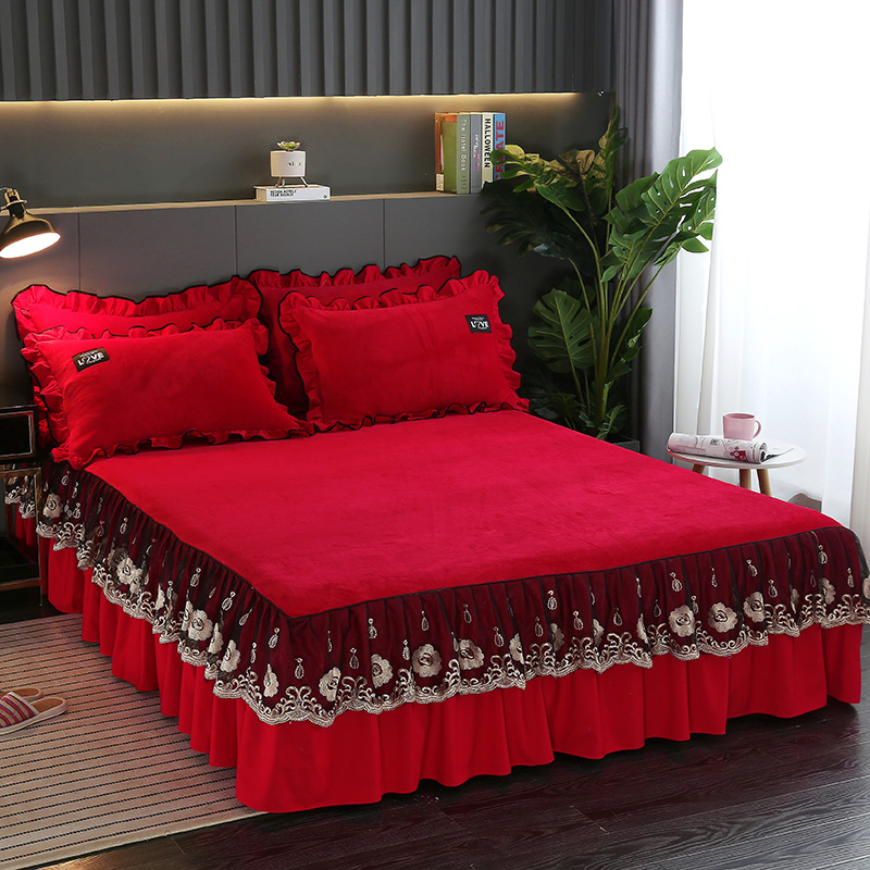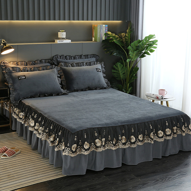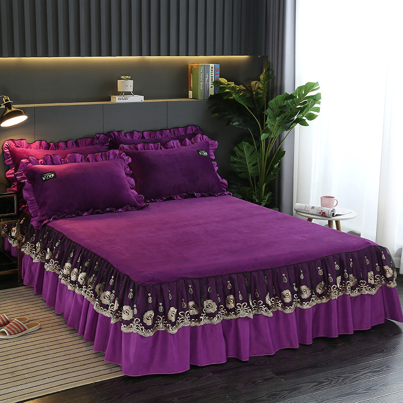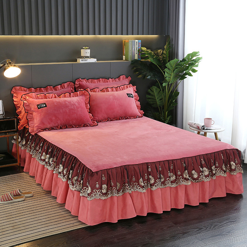 Thickened Coral Suede Bed Skirt Bed Hood Single Piece Winter Flannel Crystal Suede Silk Bed Cover Bed Gasawara Dreamt Anti Slip