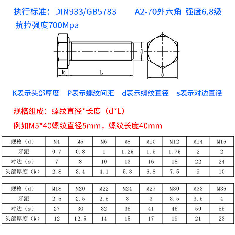 This Store Coarse M3-M36 Length 8-500 mm All Specs Indicated Coarse Degree * Length Unit is mm This hyper-connection is M6-M36 Specifications M6 *