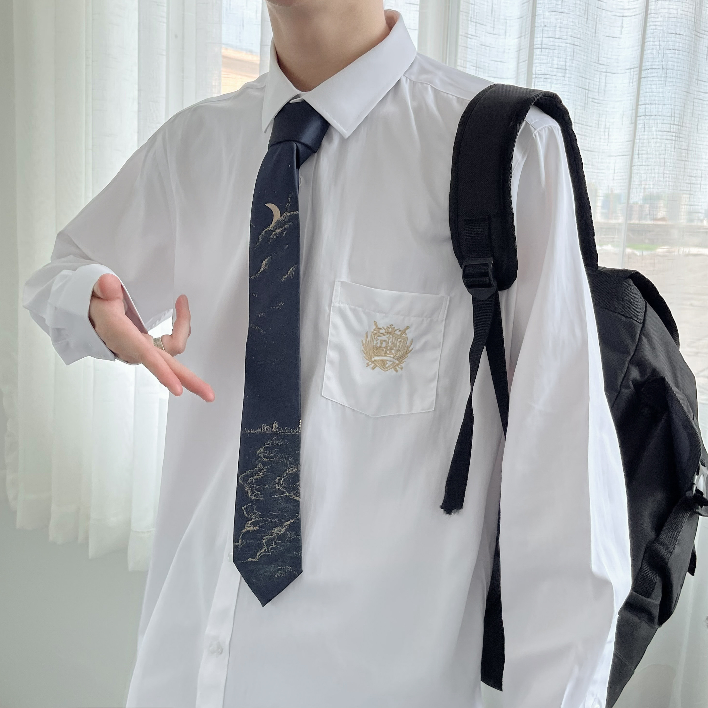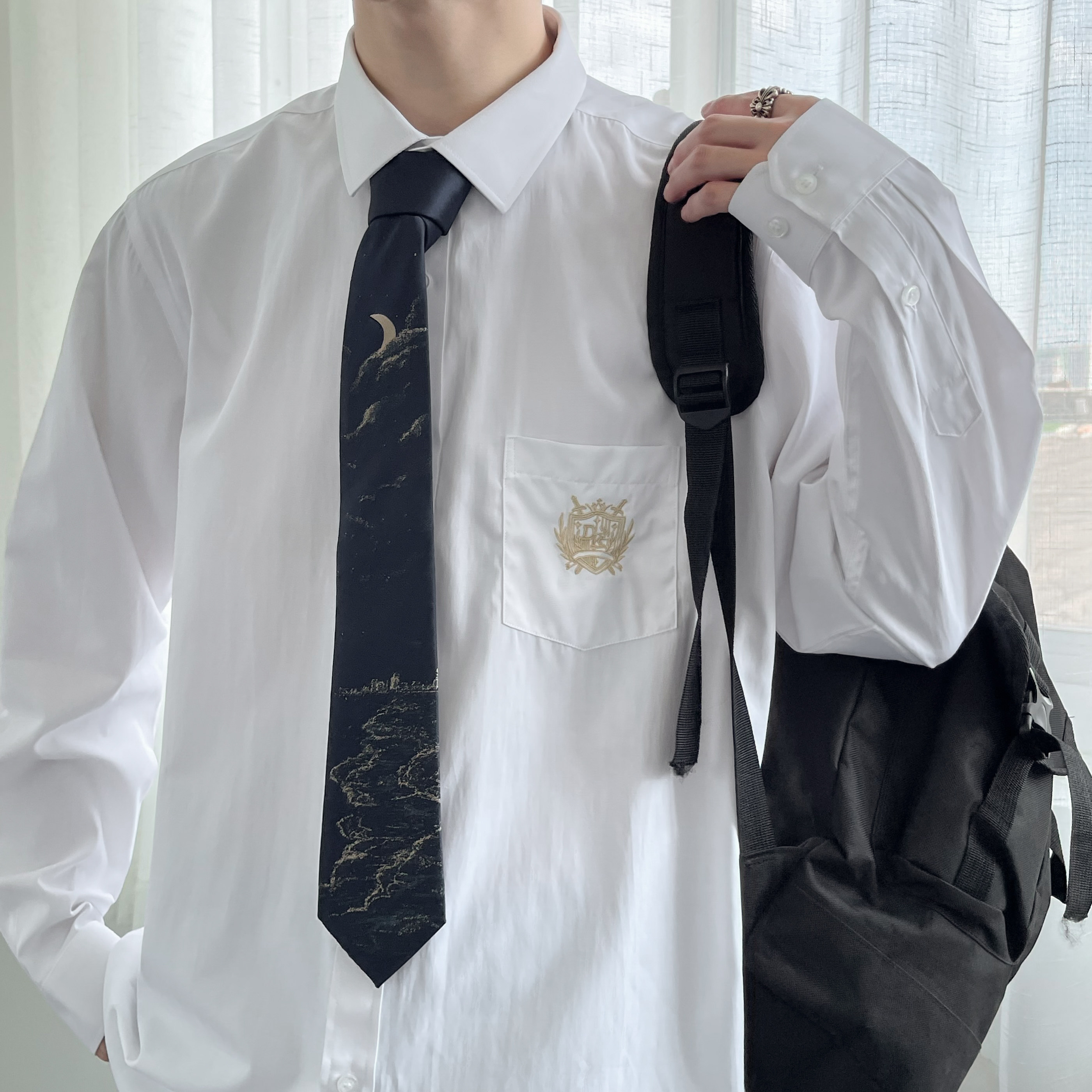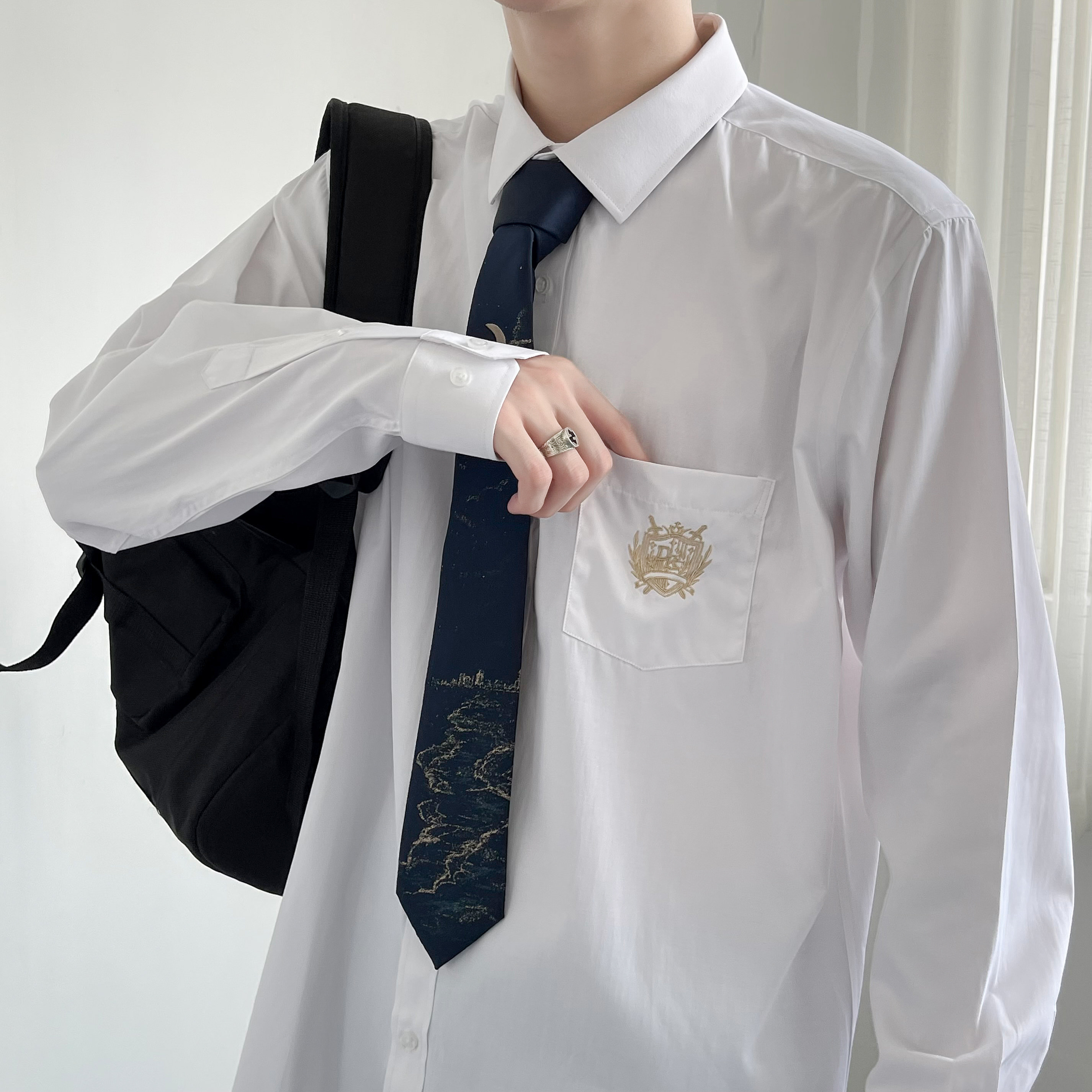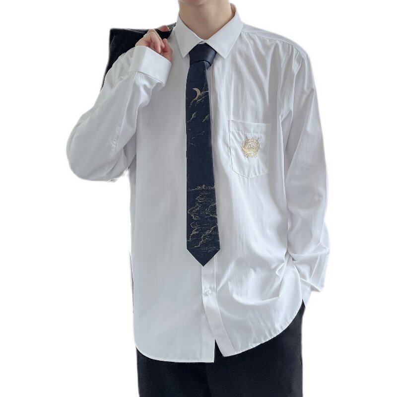 Dk Uniform Long Sleeve Shirt Male Loose Casual 100 Hitch White Shirt Spring Autumn Style Korean Version Trend College Wind Jacket