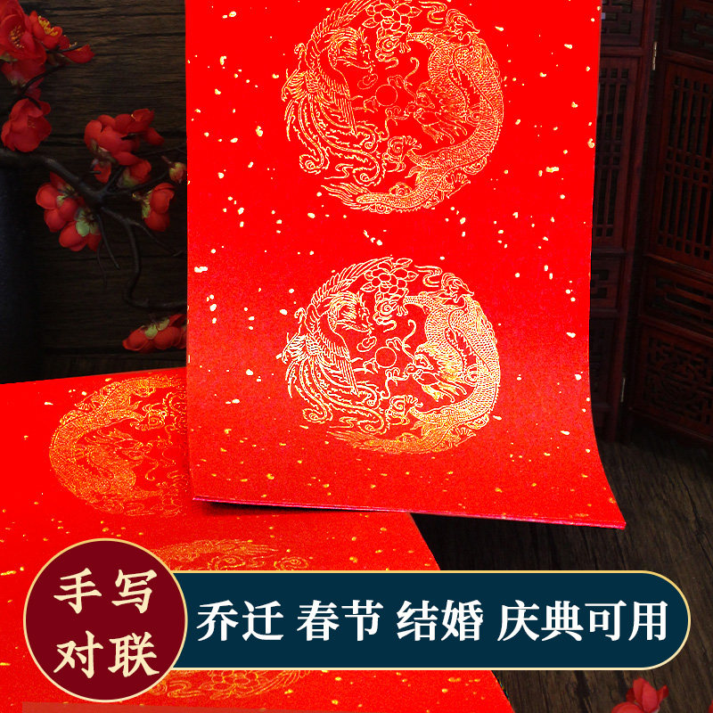 Large red paper (10 sheets of price) 23x115cm Longfeng's auspicious 5-piece couplets (with cross-batch) 24x160cm Longfeng's auspicious 5-piece couplets (with cross-batch)