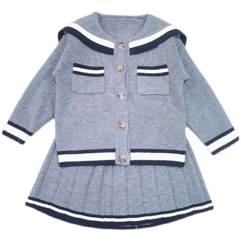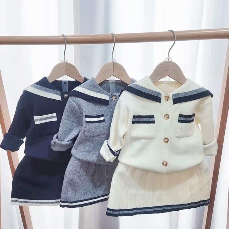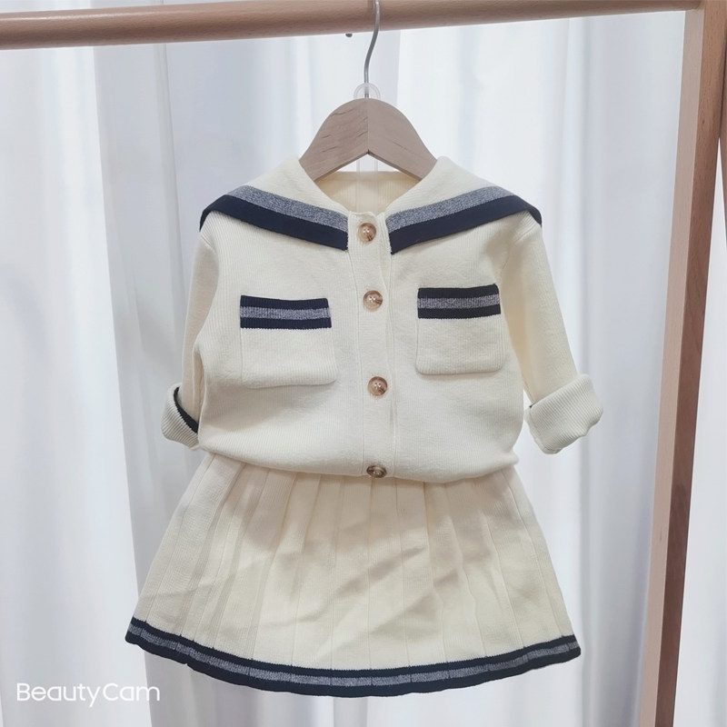 Girls Knit Sweater Cardigan Girl Baby College Style Suit Skirt Western Style Autumn Children's Two-piece Sweater Jacket
