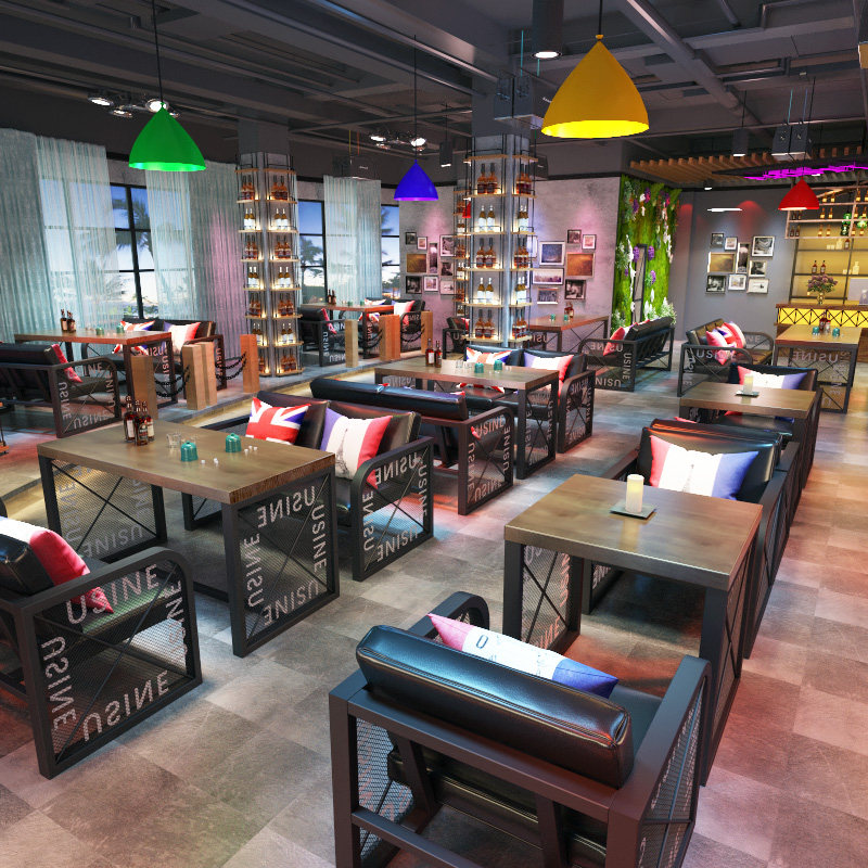 Industrial Wind Bar Clear Music Bar Sofa Hot Pot Burning Store West Restaurant Cafe Cafe Iron Art Table And Chairs Combination
