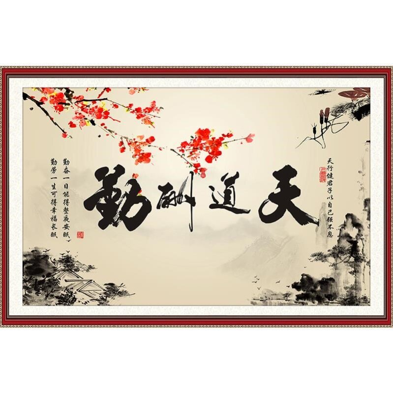 Landscape painting living room decorative painting wall stickers mural self-adhesive calligraphy calligraphy and painting student dormitory wall stickers God rewards those who work hard - Taobao
