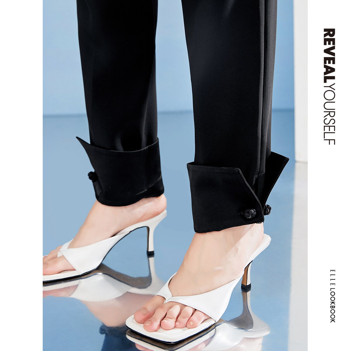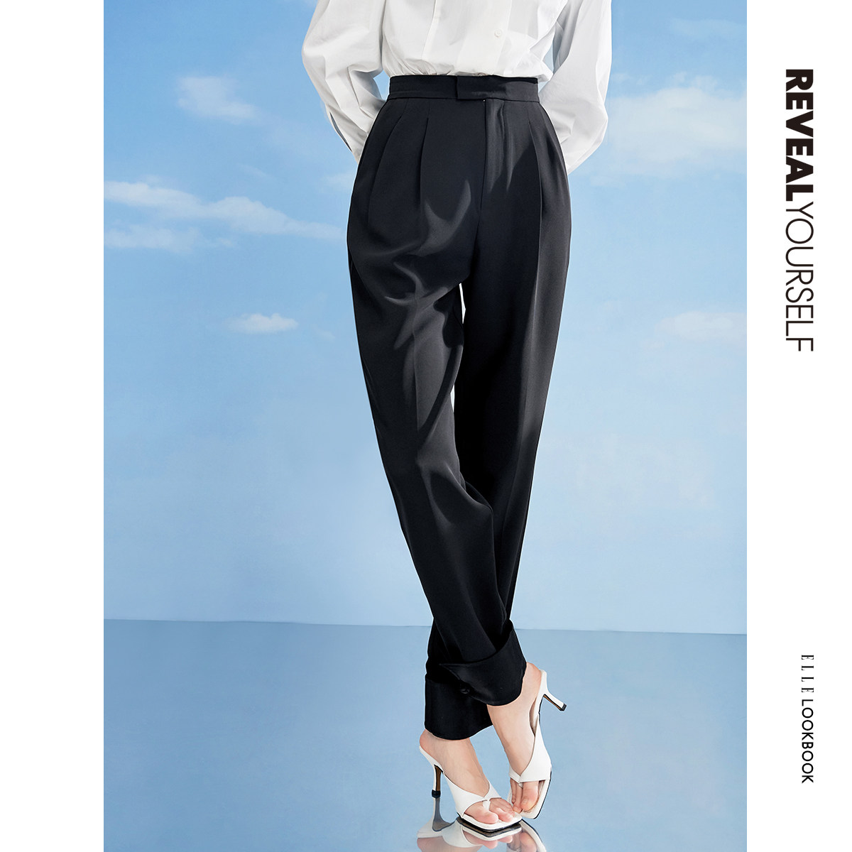 ELLE BLACK STRAIGHT BARREL CASUAL KHAREN PANTS WOMAN 2021 AUTUMN FIT NEW HIGH WAIST DISPLAY SLIM TEMPERAMENT DESIGN SENSATION PANTS