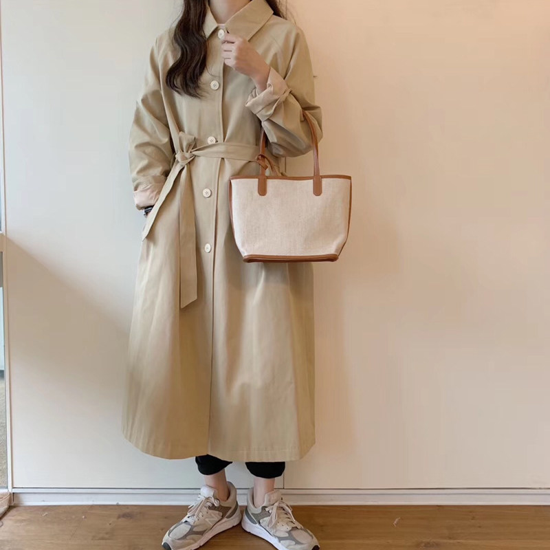 2021 Spring and Autumn New Windbreaker Coat Women's Khaki Mid-length Small Autumn Early Autumn Coat Casual