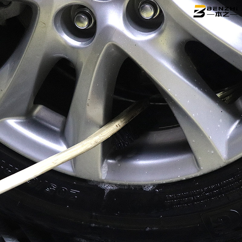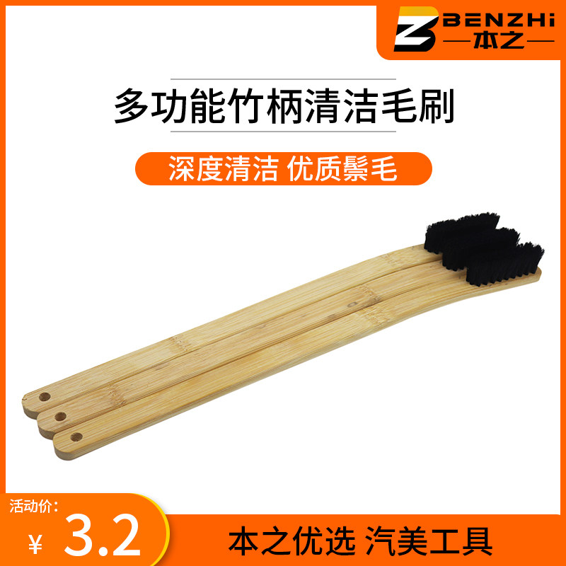 Car wheel steel ring detail brush long handle car beauty multifunctional bamboo handle brush engine cleaning bristle brush