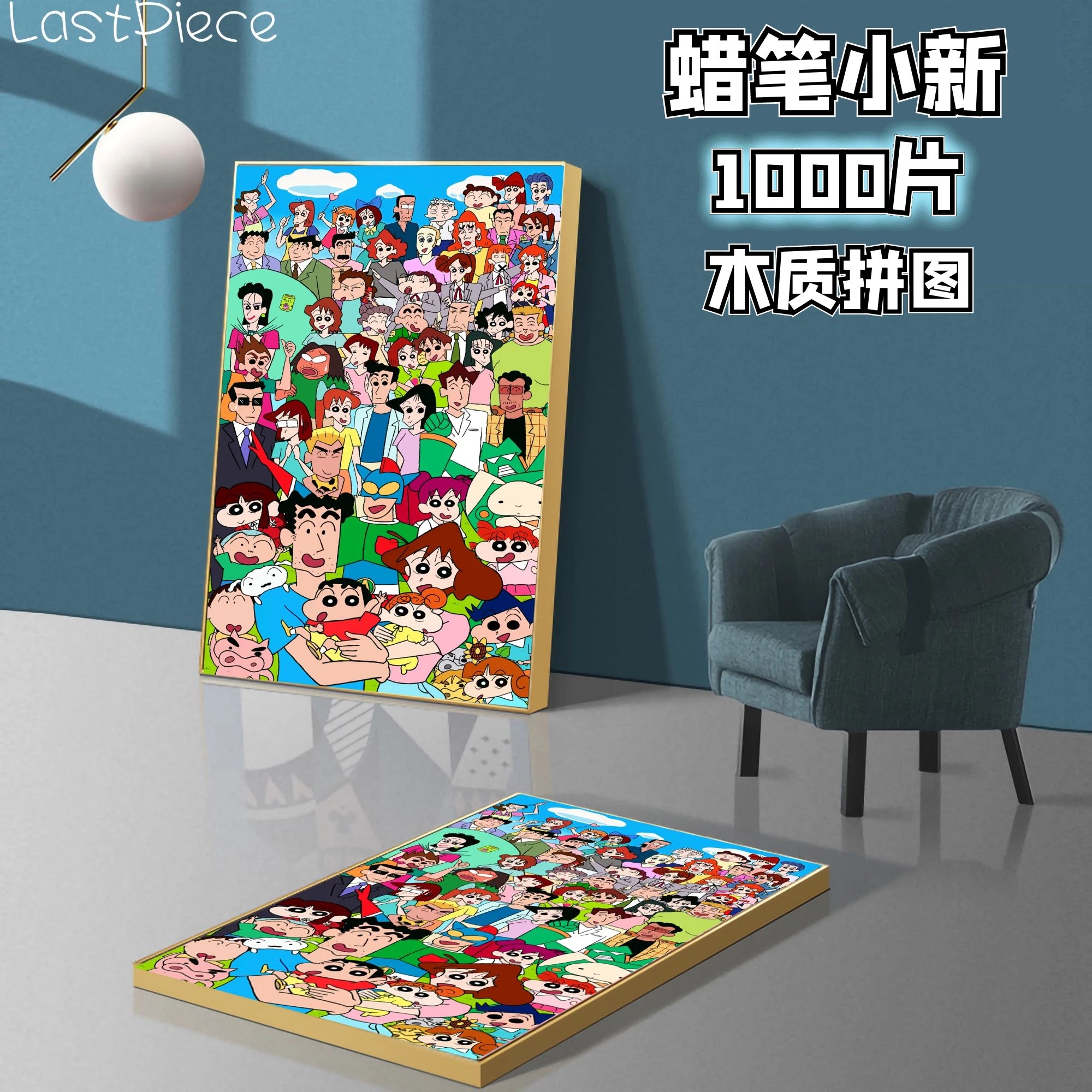 Wooden jigsaw puzzle 1000 pieces of crayon Chan little white wild field new help family portrait cartoon animation peripheral gift