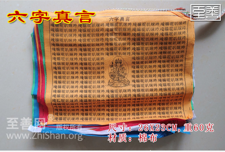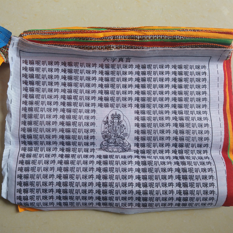 Chinese characters Jing Yin's six characters True words The mantra Guanyin's mantra The Tibet Five Color Wind Horse Flag Five Lots of the Banner Knot