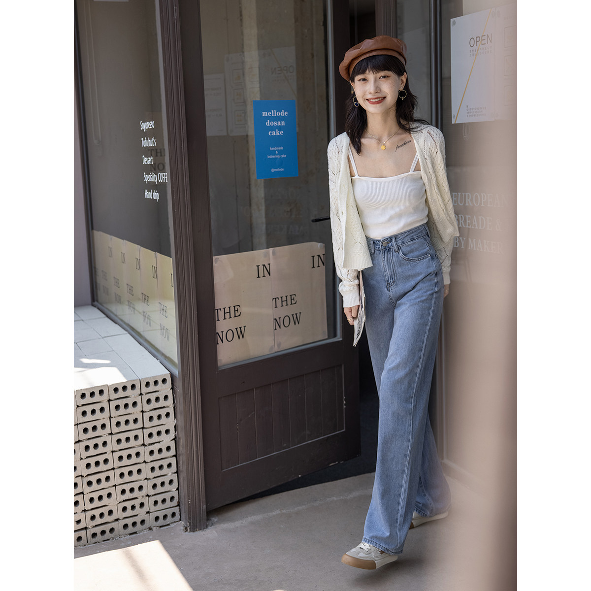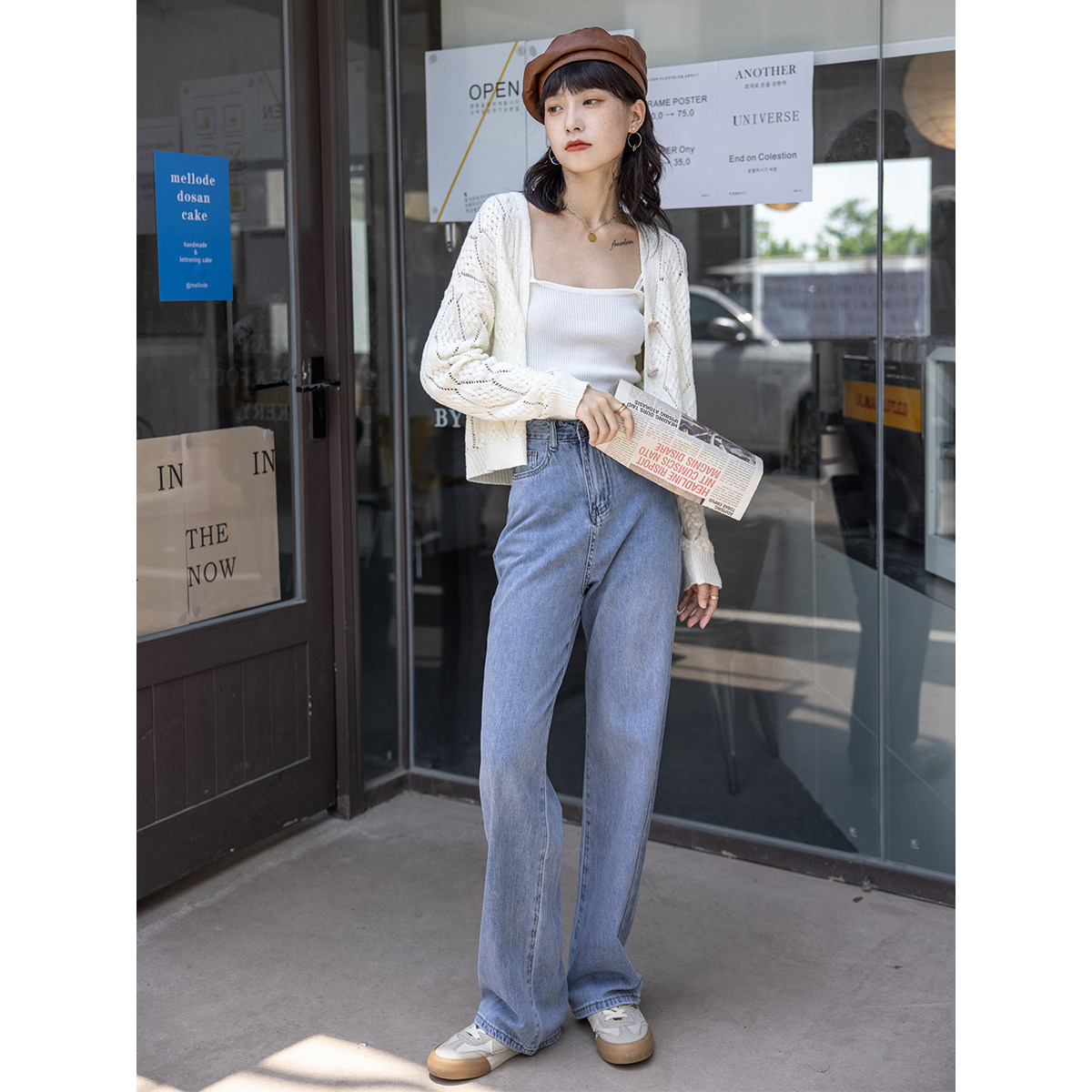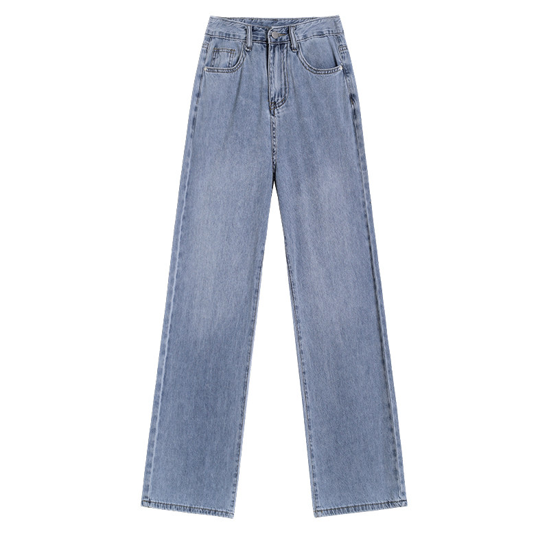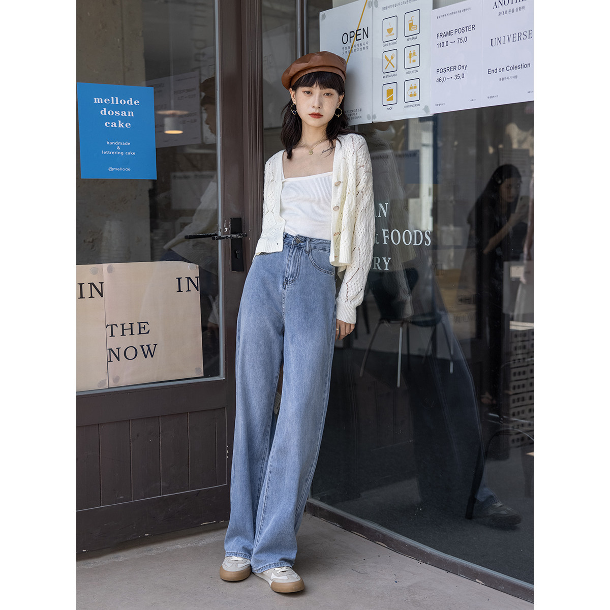 Light blue high waist denim wide pants women's 2022 spring and autumn new straight loose thin mopping pants small