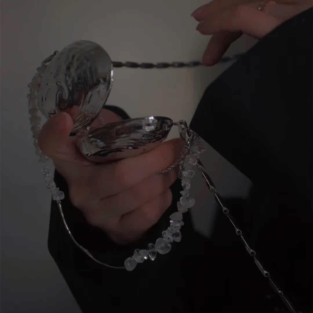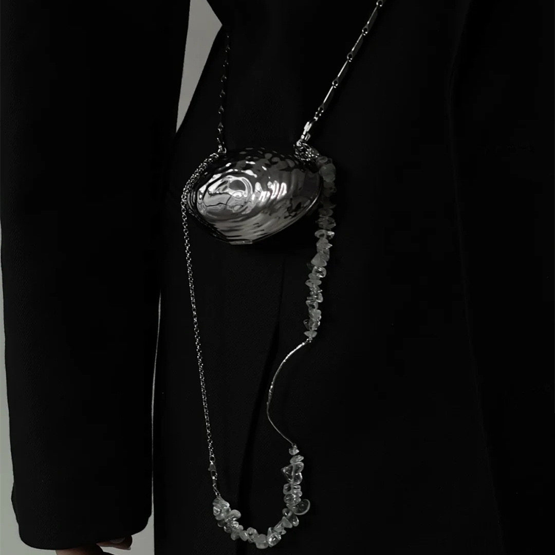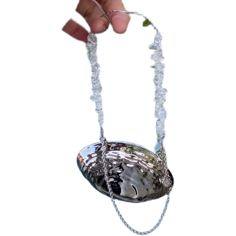 "Cute Bag" "Long Expected" Niche decorative diagonal silver metal accessories shell bag mini bag