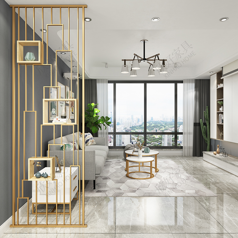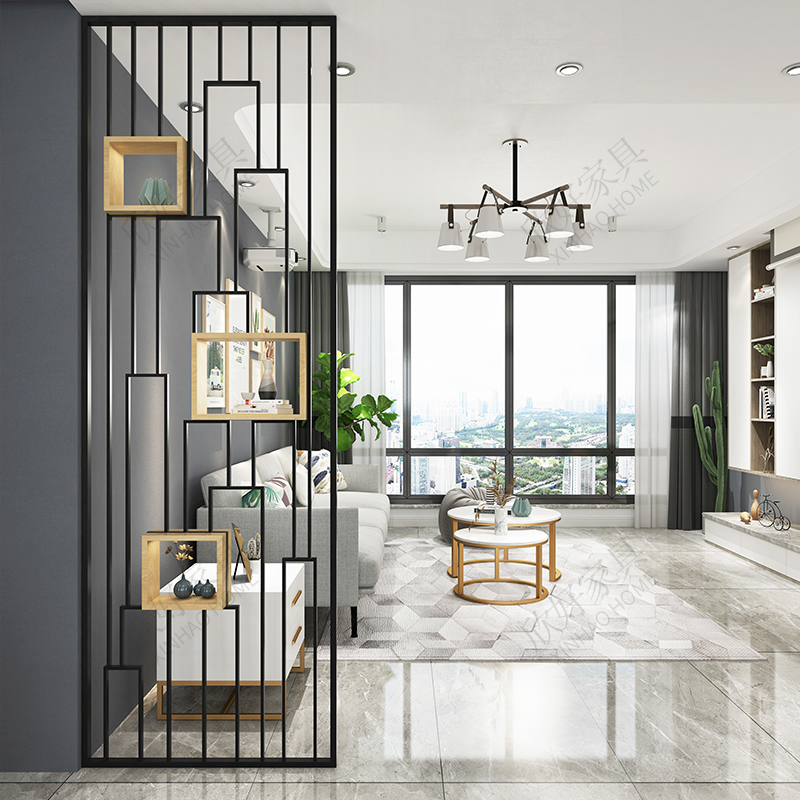 Powder room half-wall screen partition living room simple modern wrought iron lattice entry door to block the porch hollow decoration