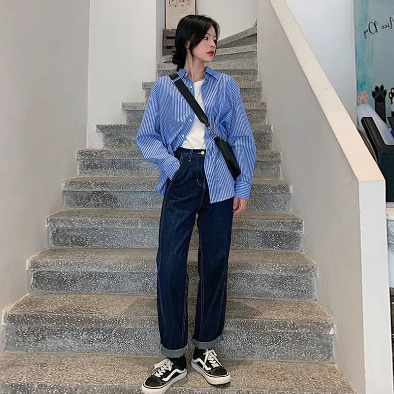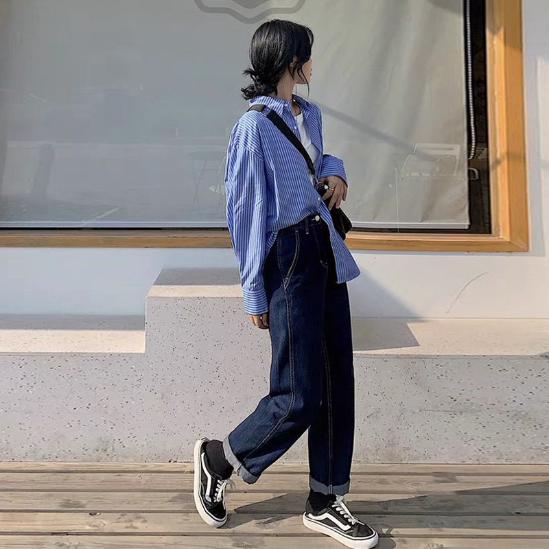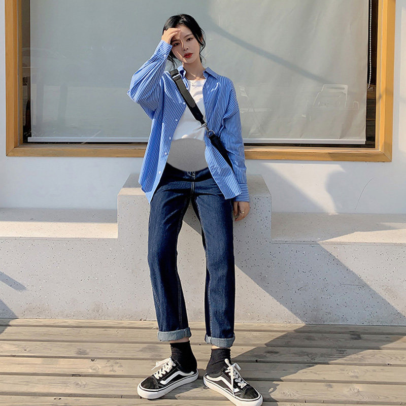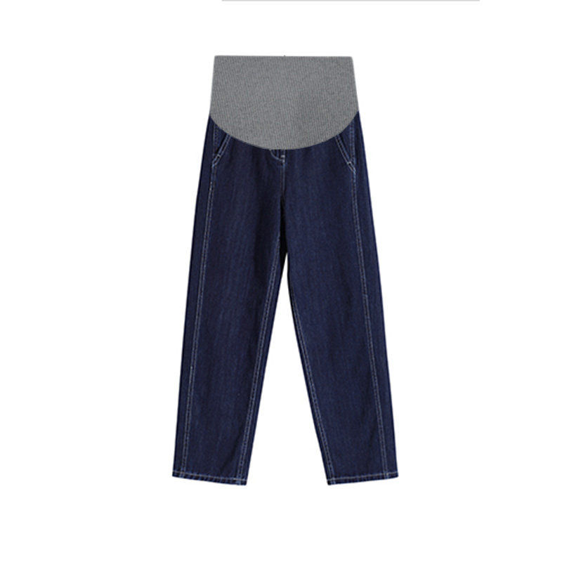 Pregnant women early autumn straight jeans Korean version of retro trendy pants pregnant women summer and autumn denim wide pants casual mopping pants