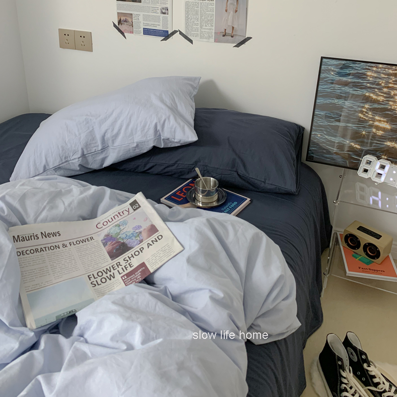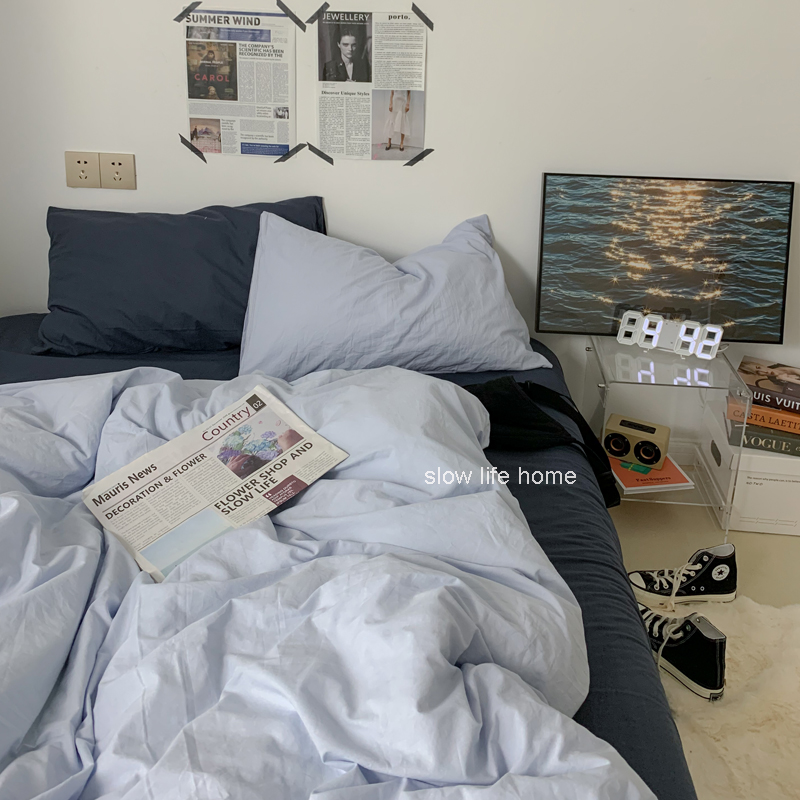Mysterious Klein Blue ~ Ins Wind All-cotton Washed Cotton Bed Four Pieces of Blended Dormitory Three-piece Bed Group