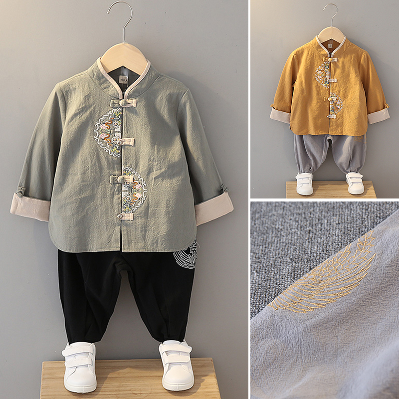 Children's Tang suit Boys' Chinese Wind Han uniforms Spring and Autumn Season Ancient clothes Master's clothes National school clothes Baby Chinese clothes