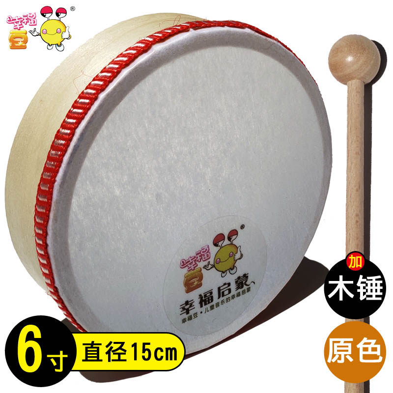 Happy beans: eco-friendly log children banging on a drum replica of a sheep leather hand clapping a drum toddler hand drumbeat baby with a small drum toy
