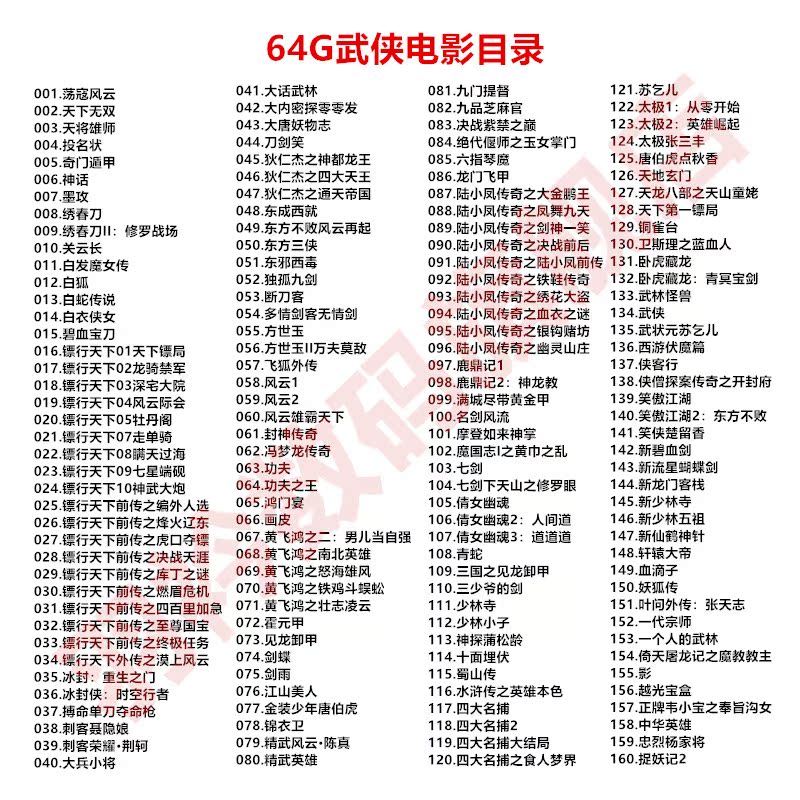 Martial arts movie memory card 64G high-speed C10 mobile phone memory card TF card martial arts kung fu martial arts movie collection
