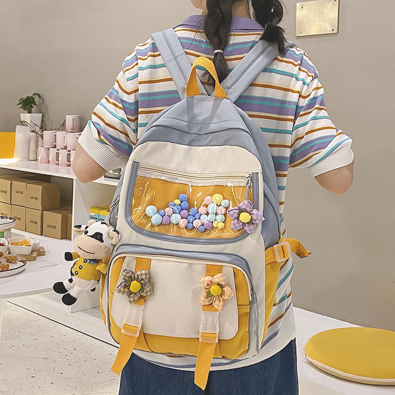 Purple green blue black orange color purple 3 small flower orange color 3 small flowers blue 3 small flowers green 3 small flowers black 3 small flowers purple little yellow cow orange color small scallopers blue