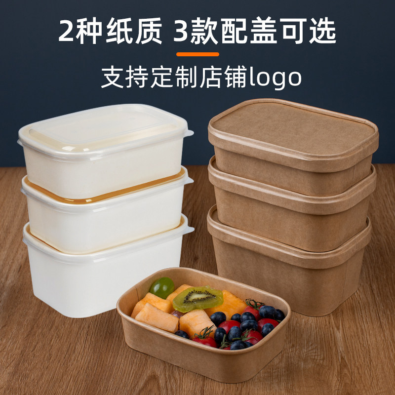 Disposable lunch box Kraft paper takeaway with cover rectangular thickening environmentally friendly when the salad box packaging