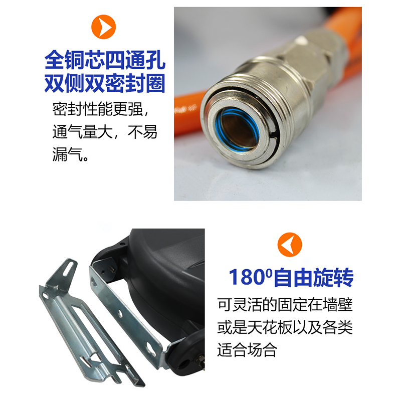 Auto beauty equipment high-pressure water drum car wash reel car wash shop water, gas and electric double-tube drum automatic telescopic trachea