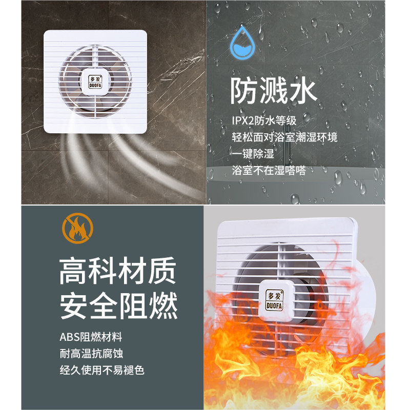 Exhaust fan 6 inch round hole household powder room glass window ventilation fan bathroom wall round powerful mute