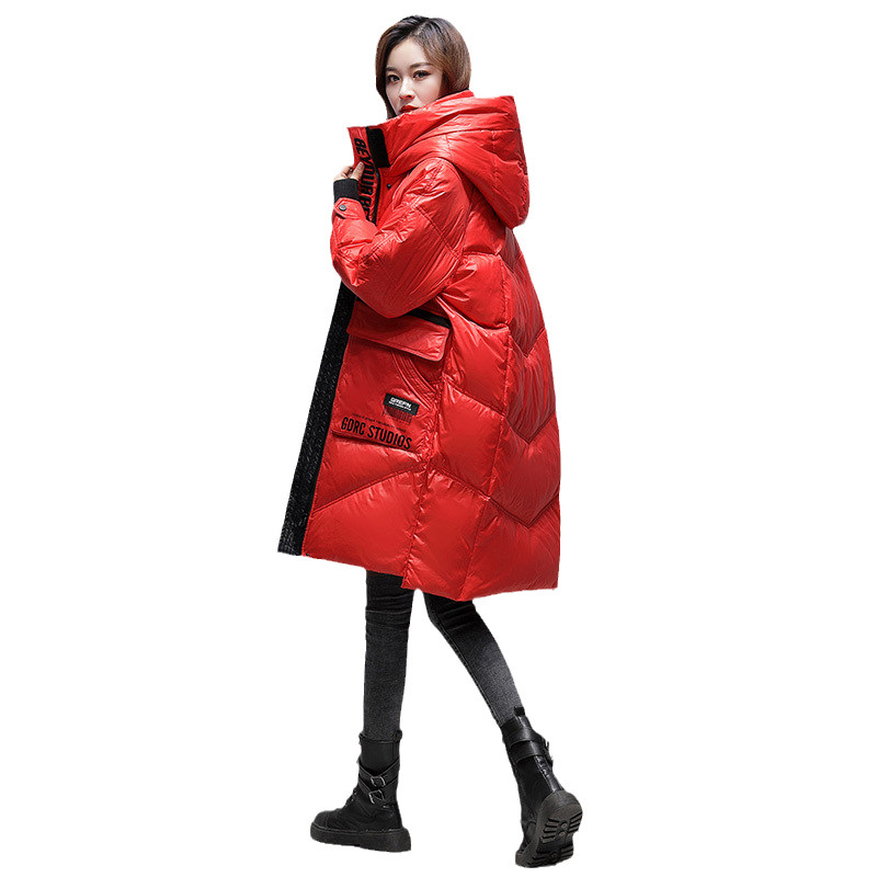 Duck duck high-end big name 2022 winter new red down women's clothing medium and long version loose cocoon outer warmer