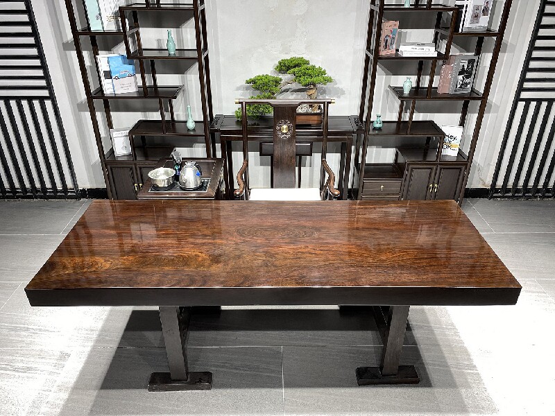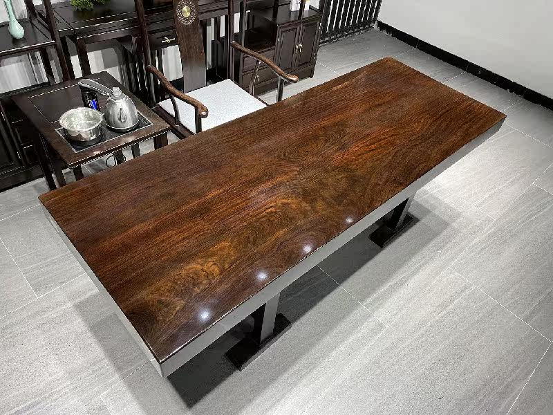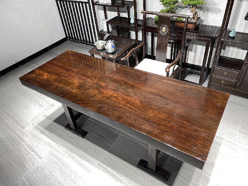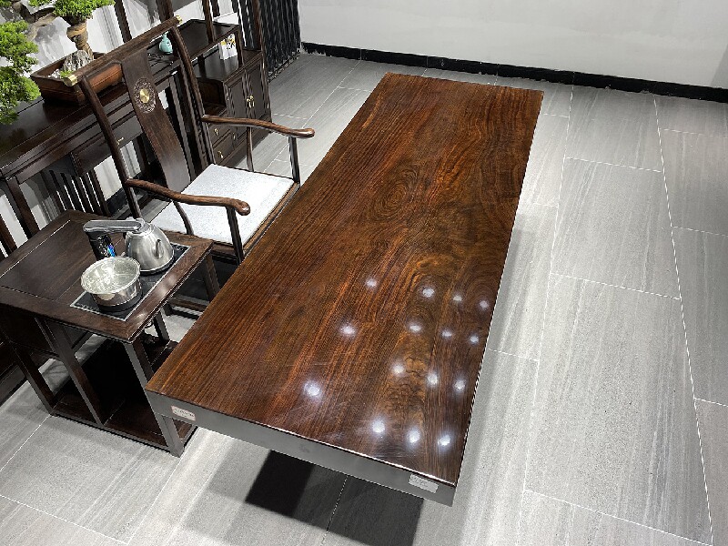 Ebony windmill wood solid wood large board tea table log tea table whole board black office conference table 2 meters long and wide 90