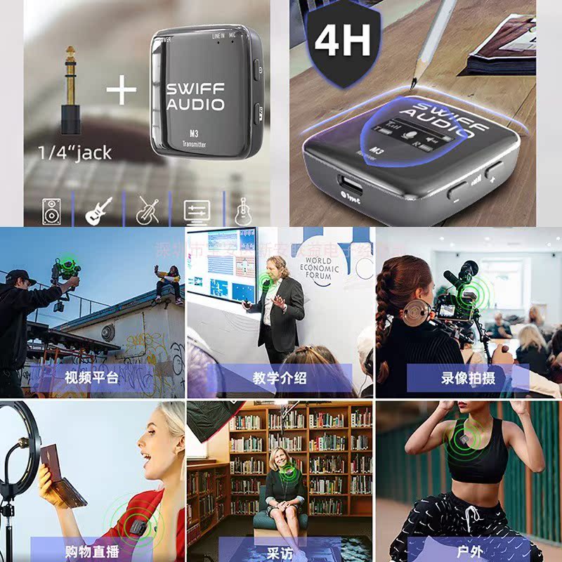 SWIFF M3 fidelity dual channel Wireless Microphone Transmission 30 m Live Video Video Interview Teaching Presentation-Taobao
