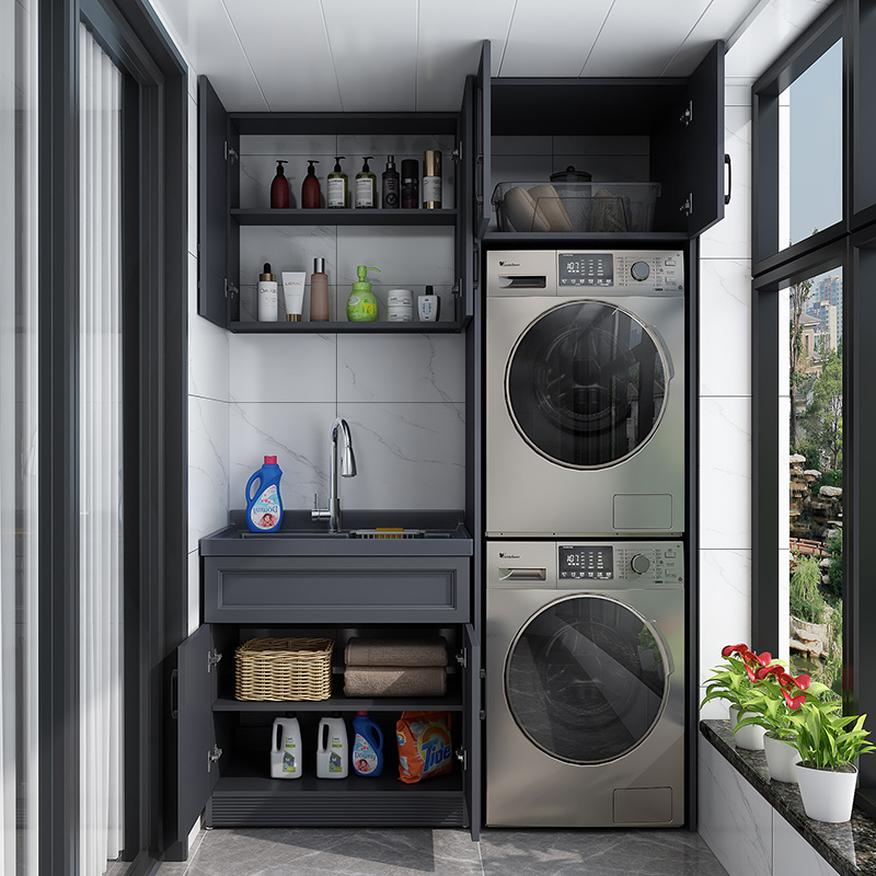 Space Aluminum Laundry Cabinet Balcony Washing Machine Integrated Cabinet Makeup room Wash Basin Cabinet Combined Laundry Pool with washboard