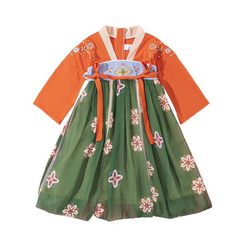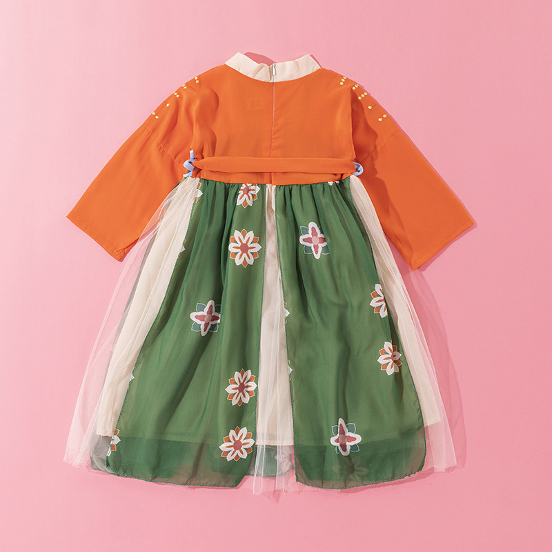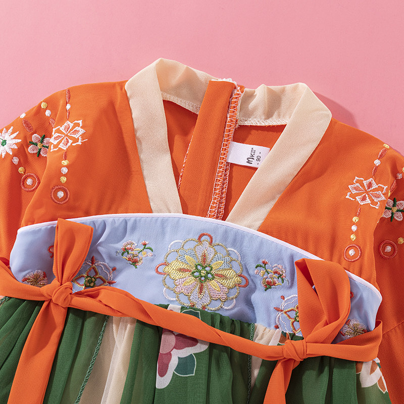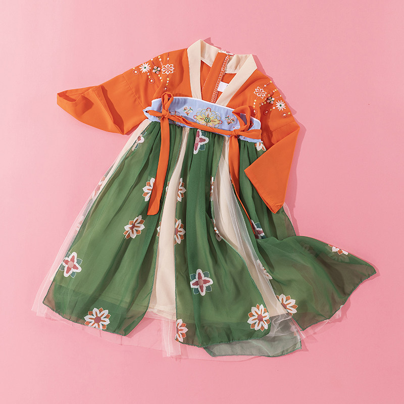 Han Fu Girl Autumn Clothing Super Fairy Ocean Dress Children Ancient Clothes China Wind Tang Dress Thin style Skirt Girl Short Sleeve Fall