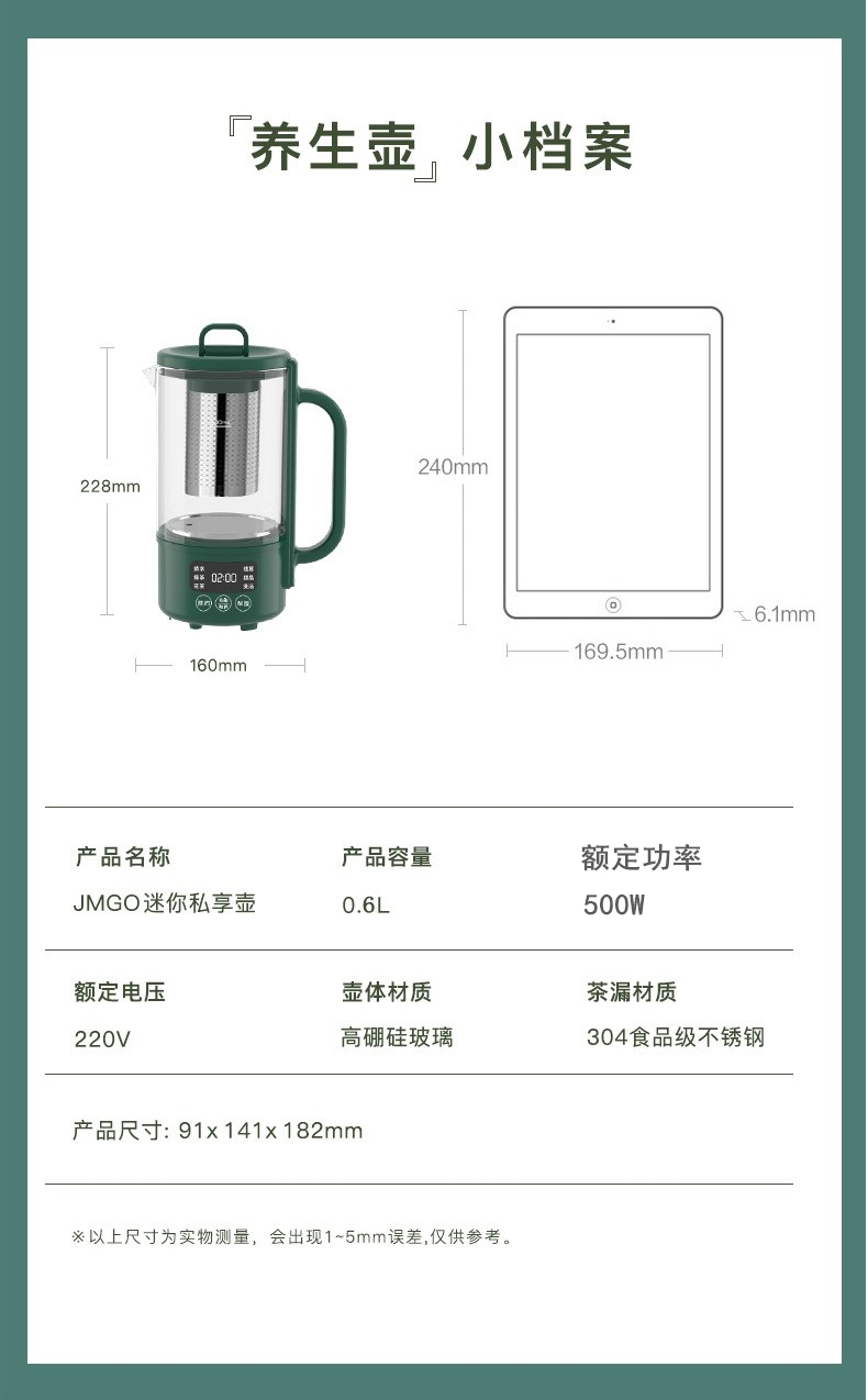 JMGO mini health pot multi-functional boiled flower teapot office tea maker portable heat preservation kettle