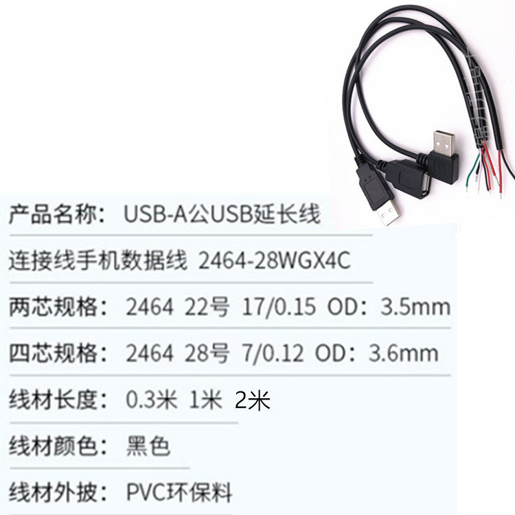USB male head 2 core power cord USB male head 4-core data line USB female head 2 core power cord USB female head 4-core data line USB bent male head 2 core power supply