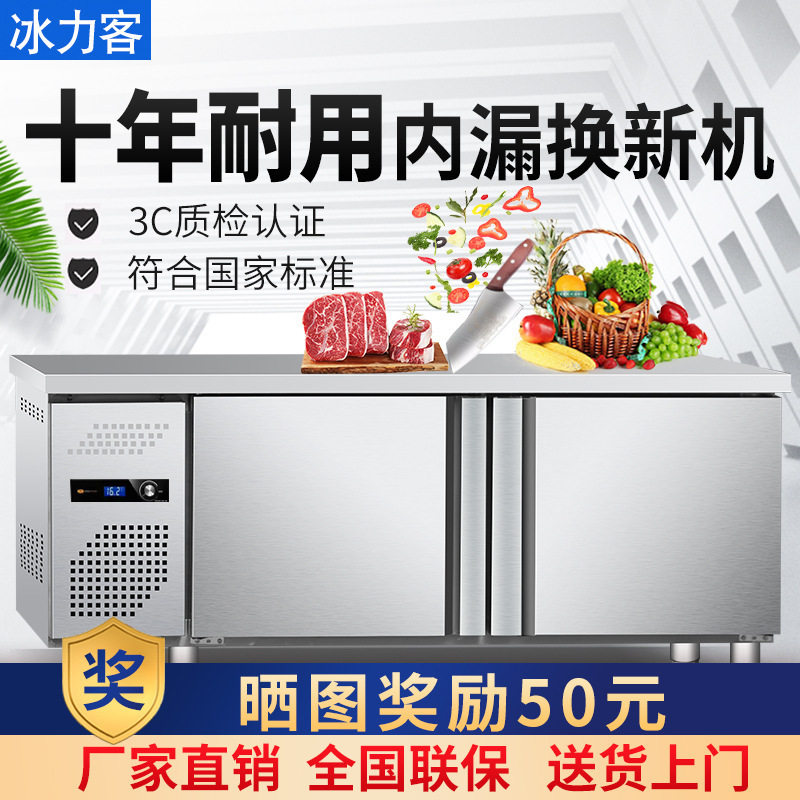 Bench Ice cabinet Commercial refrigeration Frozen Kitchen Milk Tea Shop Stainless Steel Operating Table Refreshing Hotel Hotel Fridge