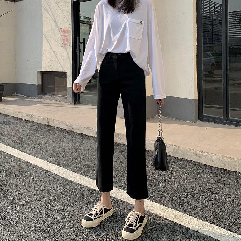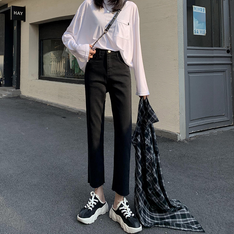 2021 Spring Autumn New Black Straight Drum Jeans Woman High Waist 90% Loose small sub smoke tube pants to be slim