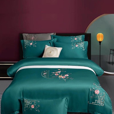 Mercury Home Textiles Chinese-style high-end cotton wedding four-piece embroidery 100-count cotton wedding quilt cover bedding 4