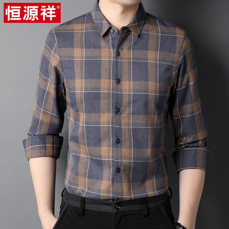 Hengyuanxiang 2021 autumn new sub-plaid shirt men's long-sleeved middle-aged dad casual trend men's shirt