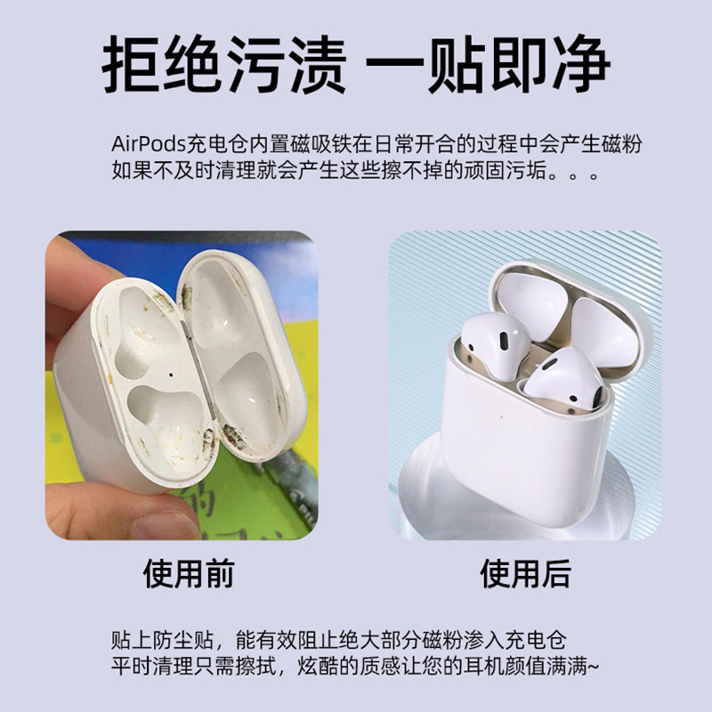 airpods dust sticker airpodsppro metal dust-proof stickers Apple wireless Bluetooth headphones anti-iron powder airpods 2nd generation headphones stickup charging case internal adhesive film