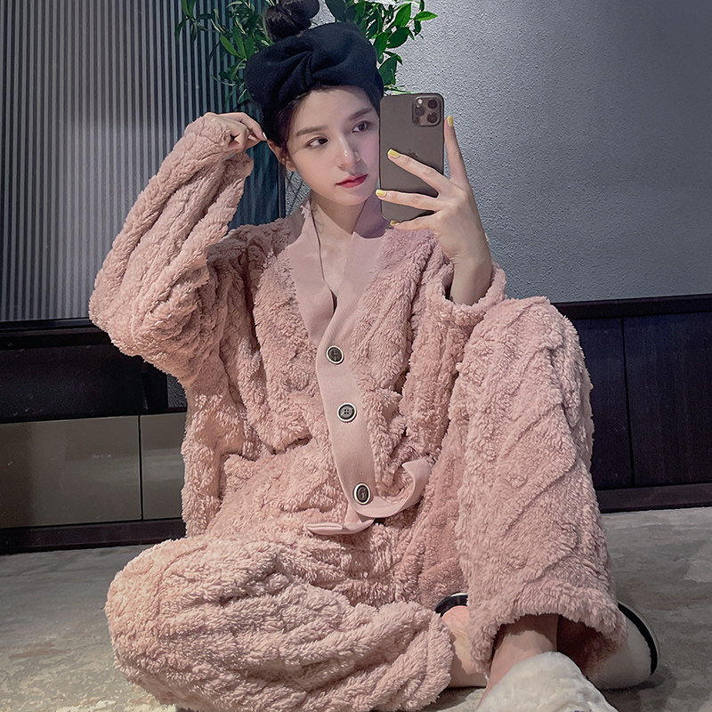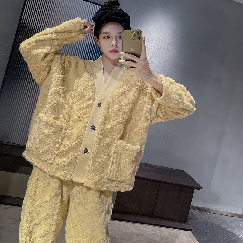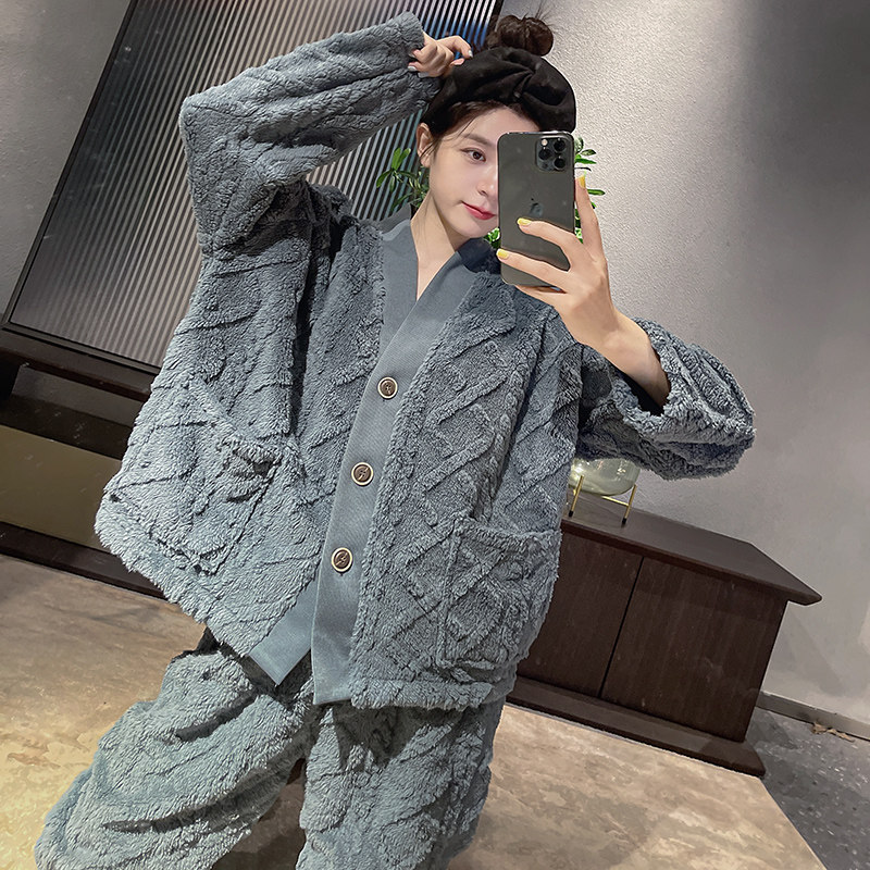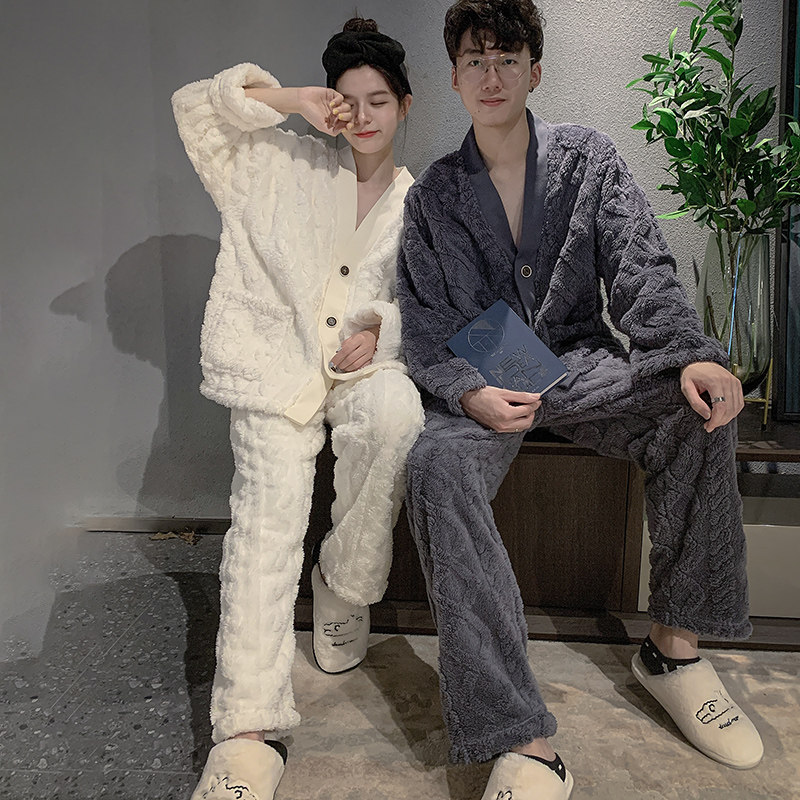 Pajamas women 2021 new autumn and winter coral velvet thickened home clothes spring and autumn can be worn outside couple suit men