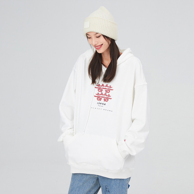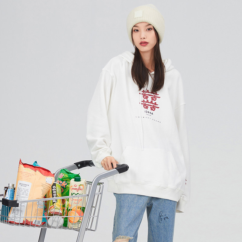 LUCKIET trendy brand hooded thin section long-sleeved sweater autumn national tide loose casual letter printing couple jacket