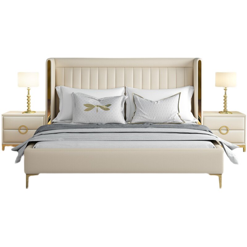 Upgraded version of light luxury leather bed Upgraded version of leather bed 1 bedside table upgraded version of leather bed 2 bedside cabinets upgraded version of leather bed Cashmere ring upgraded version of leather bed Cashmere environmentally friendly upgraded version of leather bed Cashmere environmentally friendly coconut
