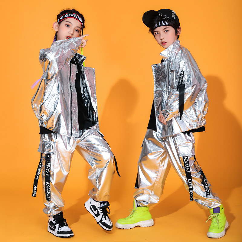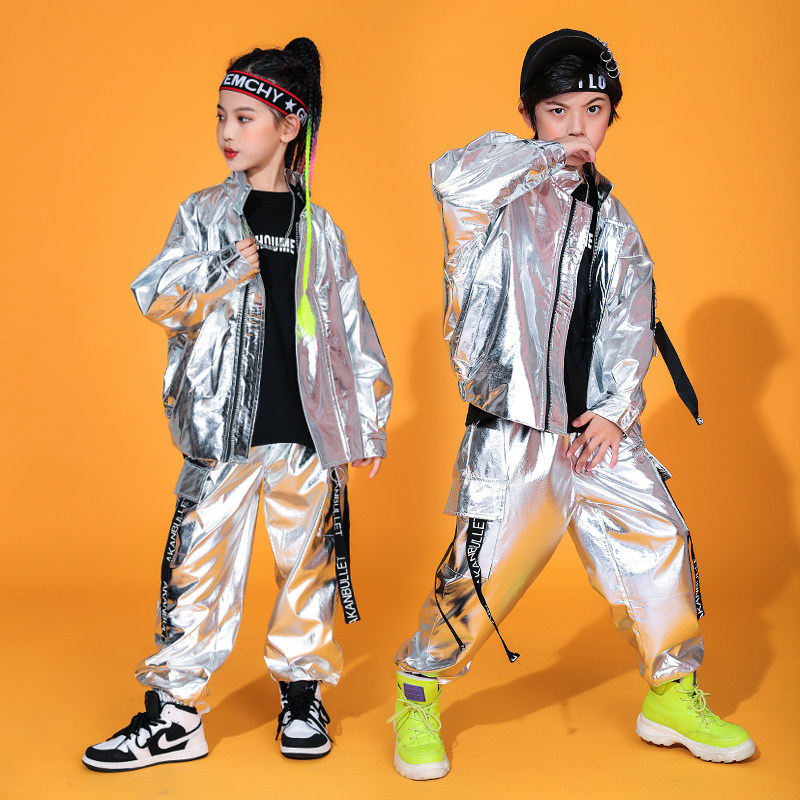 Silver Jacket Silver Pants Black Long Sleeve T-Shirt Jacket Pants Jacket Pants Gold Love Headband Jacket Pants Streamers Black Cap Jacket Pants Black T-shirt Outer