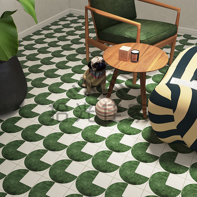 Ink green large mouth small flower tile residential balcony vintage floral tile 200 X200 garden sun house tile