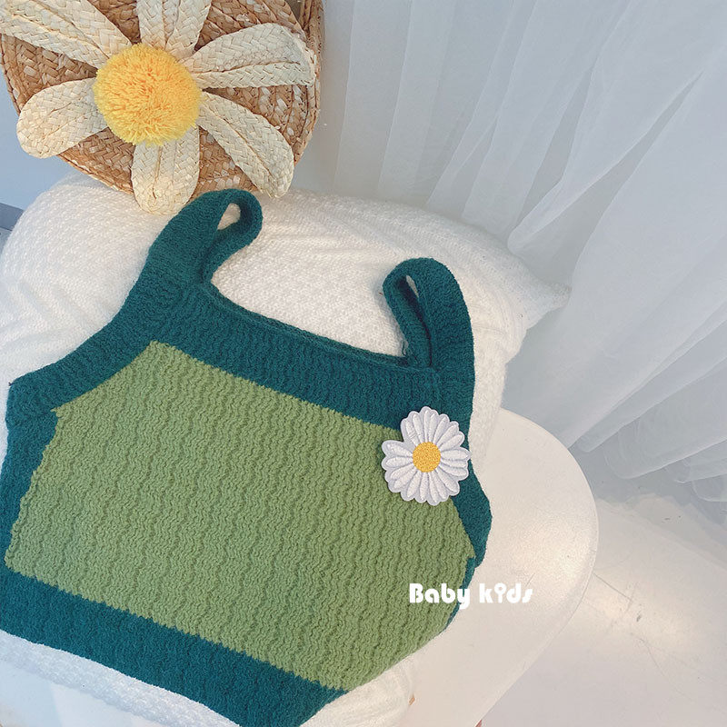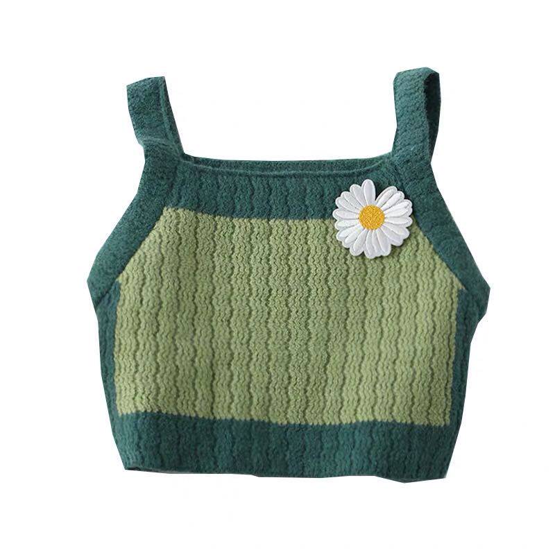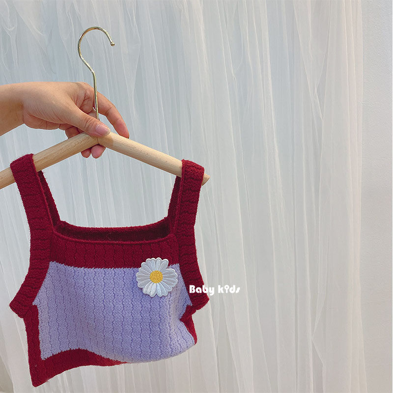 South Korean girl's clothing vest small daisy knit harness short outside wearing 2022 spring autumn new baby sleeveless T-shirt