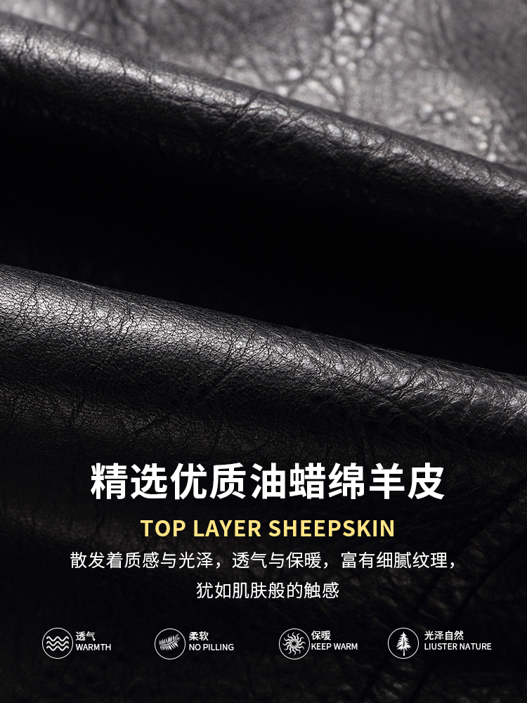 Haining's new high-end leather jacket men's oil wax sheepskin short casual suit leather jacket motorcycle jacket trendy