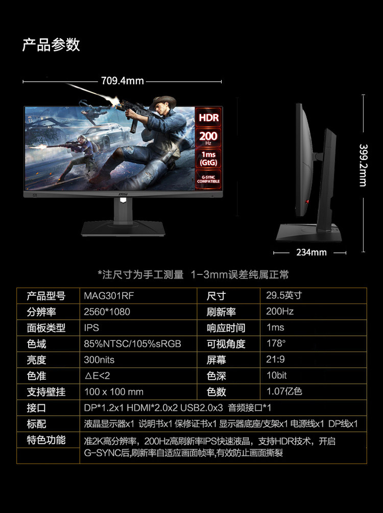 MAG301RF 30 inch 2560 * 1080 IPS 1MS 200Hz G-SYNC certified