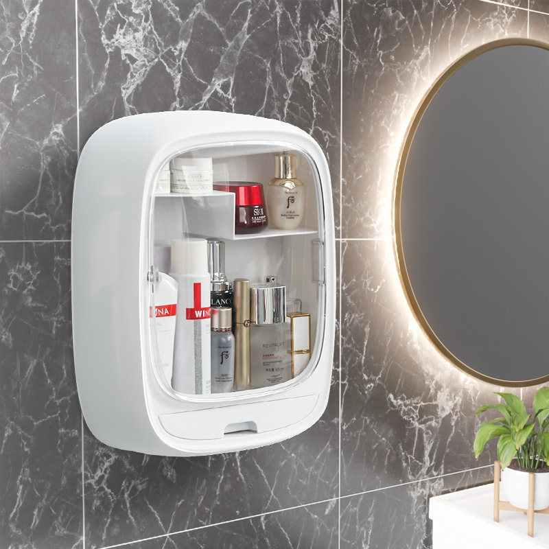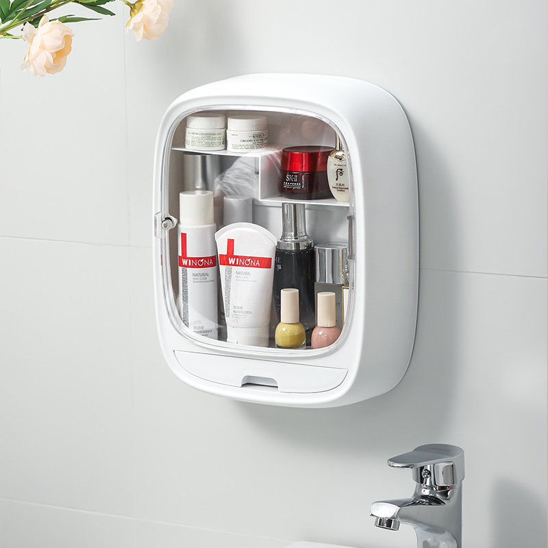 Wall-mounted cosmetic storage box washstand dust-proof makeup room punch-free bathroom toilet skin care makeup rack