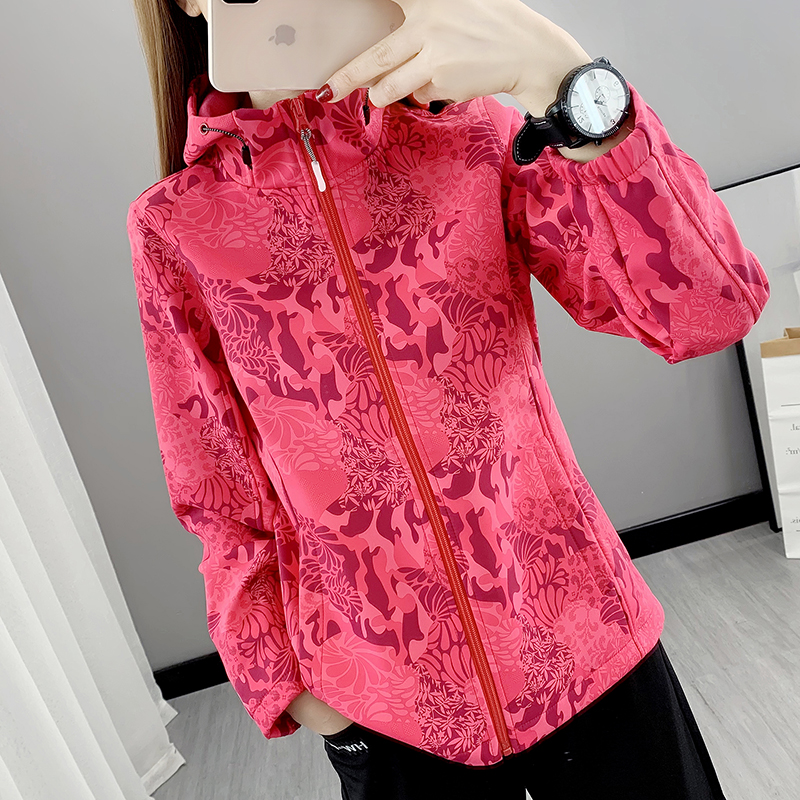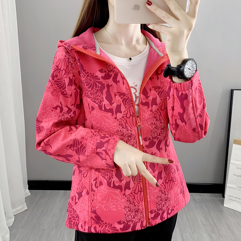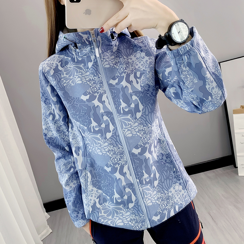 Vanguard softshell clothes Women in spring and autumn thickened with velvety outdoor broken flowers Soft shell waterproof Mountainewear ladies windproof jacket